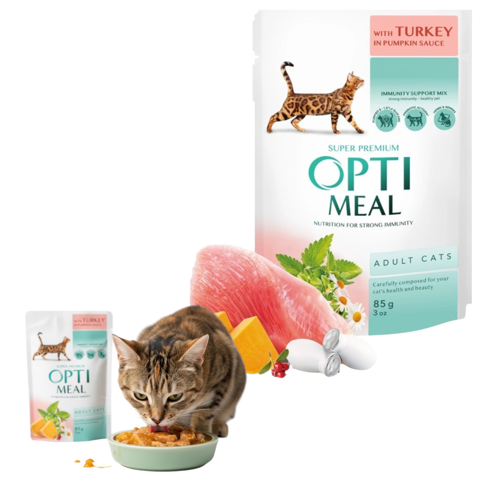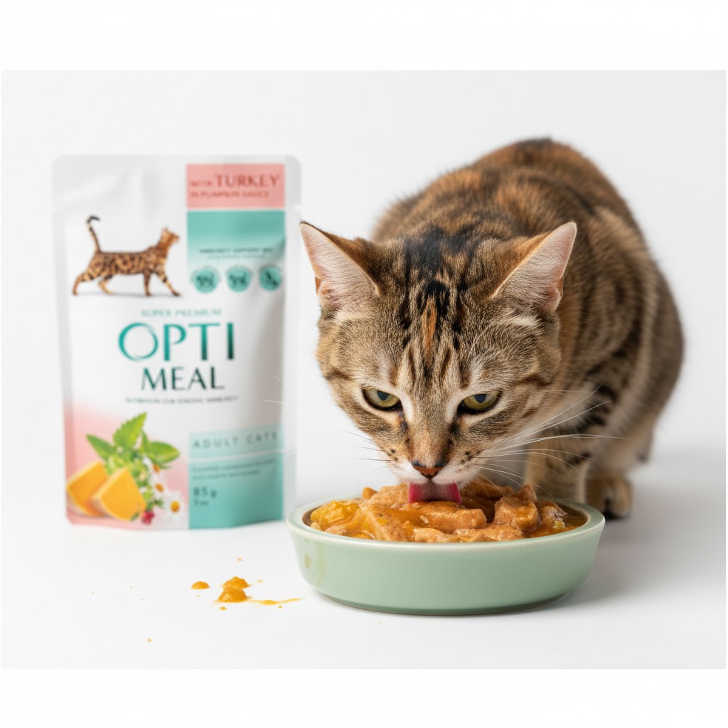 OPTIMEAL Super Premium pełnoporcjowa mokra karma dla dorosłych kotów z indykiem w sosie dyniowym 85 g.