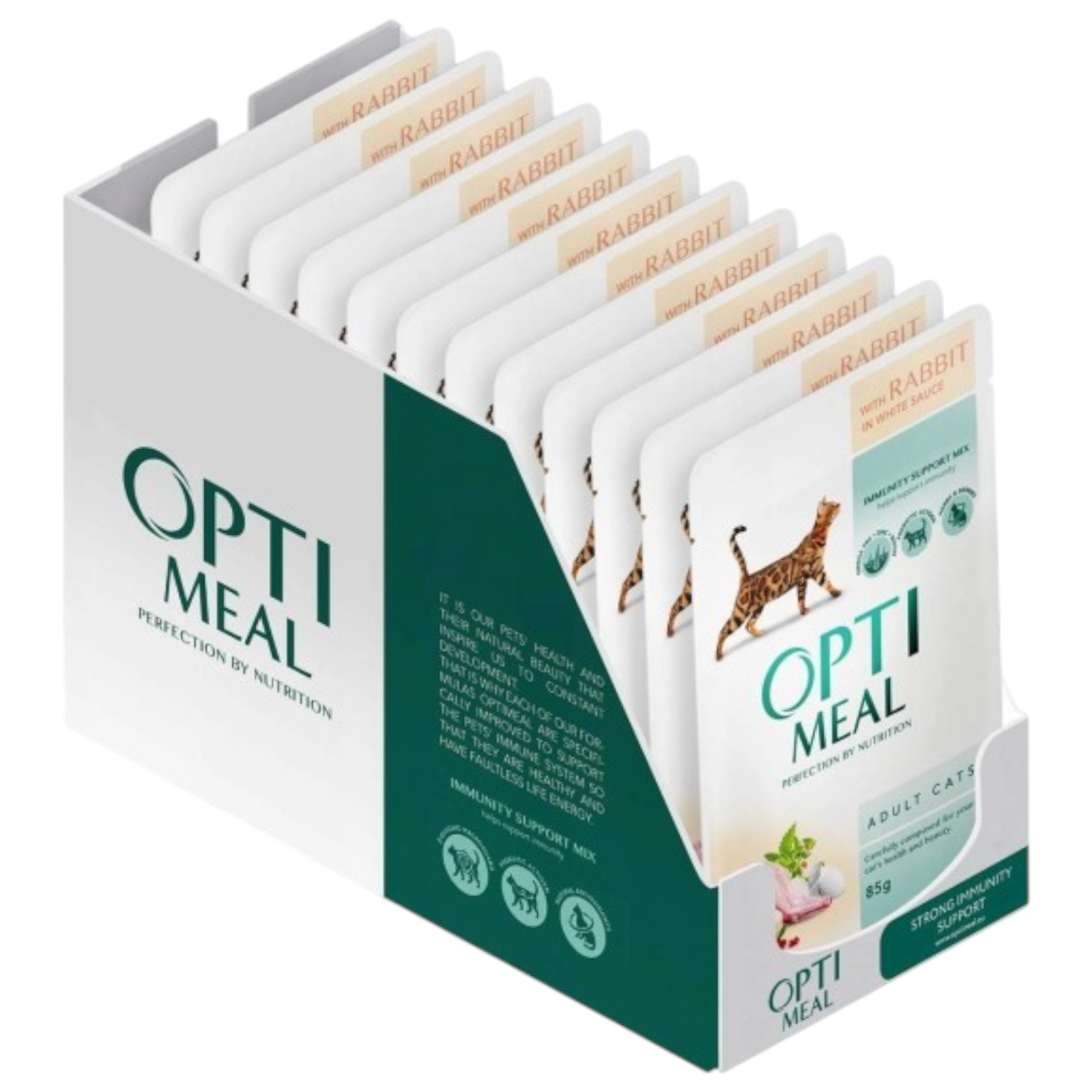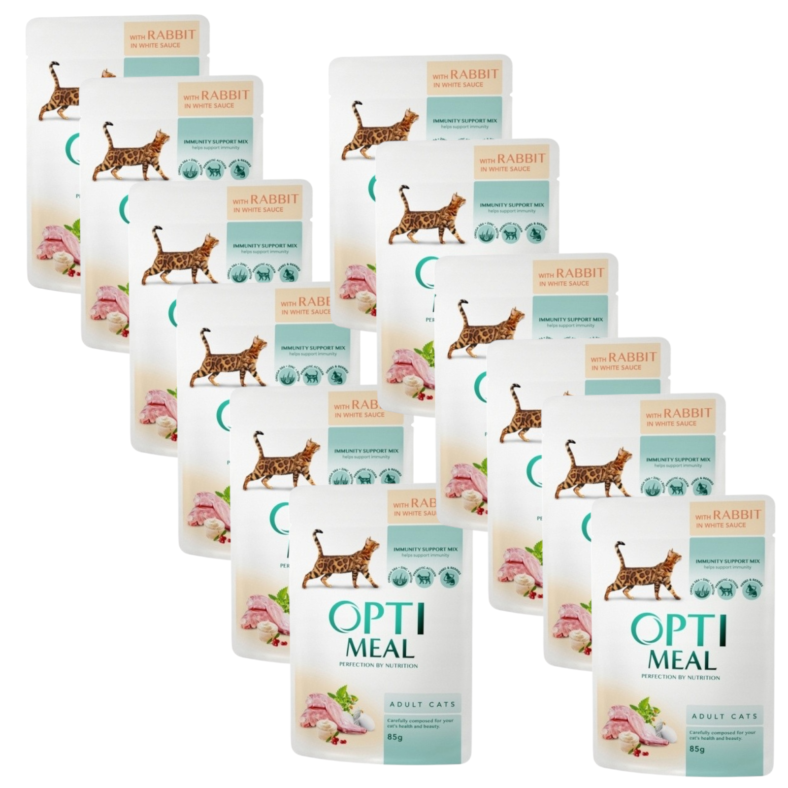 OptiMeal Premium Saszetka Karma Mokra dla Kota Królik w Białym Sosie ZESTAW 12x85g