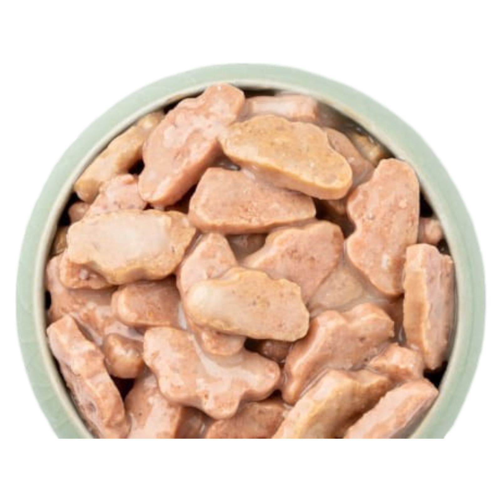 • 68% mięsa i produktów pochodzenia zwierzęcego w kawałkach (w tym 24% kurczaka, 15% serca wołowego i innych)