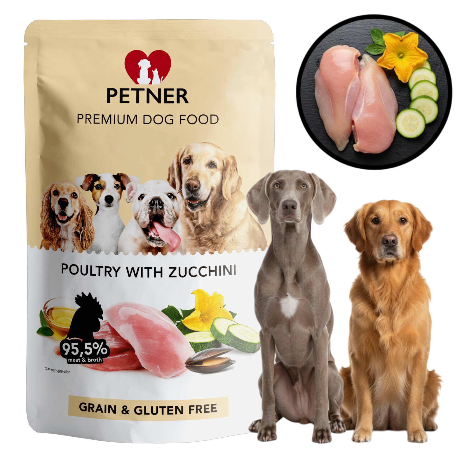 PETNER Wysokomięsna Karma Mokra DRÓB Z CUKINIĄ 95,5% Mięsa 500g