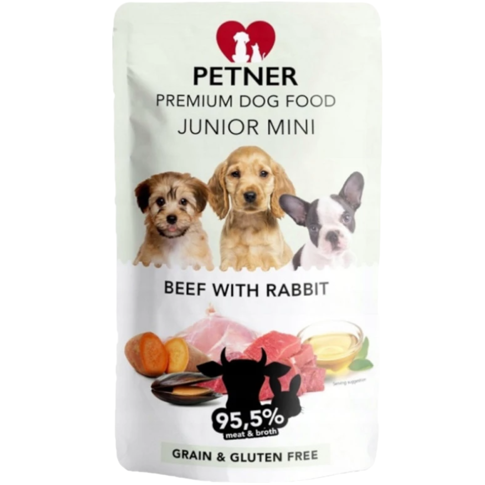 PETNER Wysokomięsna Karma Mokra dla Szczeniąt WOŁOWINA Z KRÓLIKIEM 95,5% Mięsa 500g