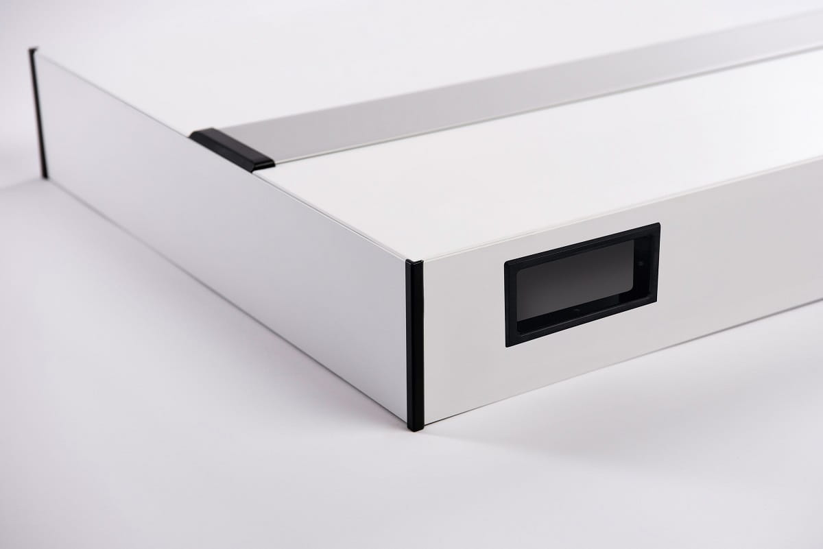 Pokrywy proste dostępne są z prostym profilem zewnętrznym oraz prostym górnym profilem aluminiowym.