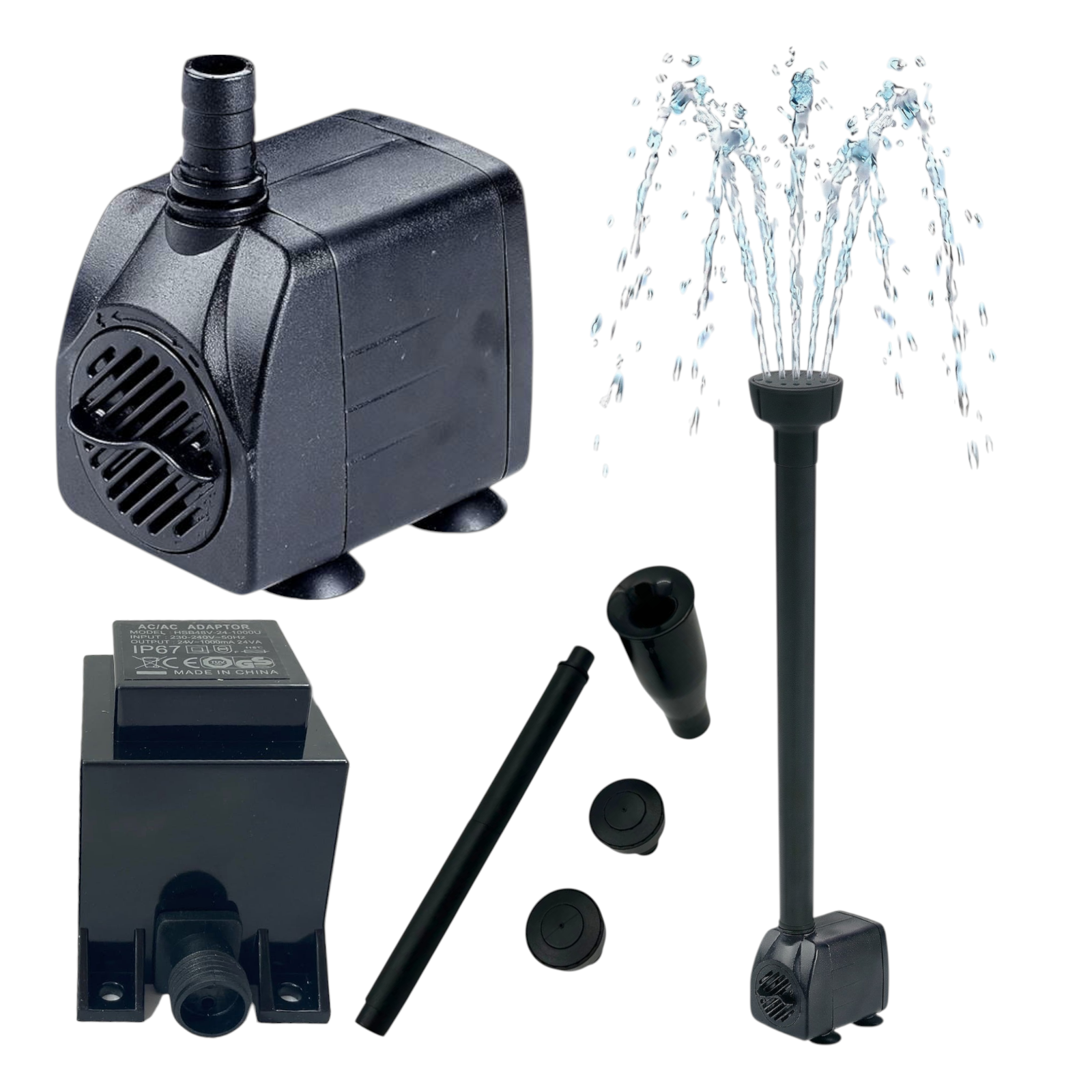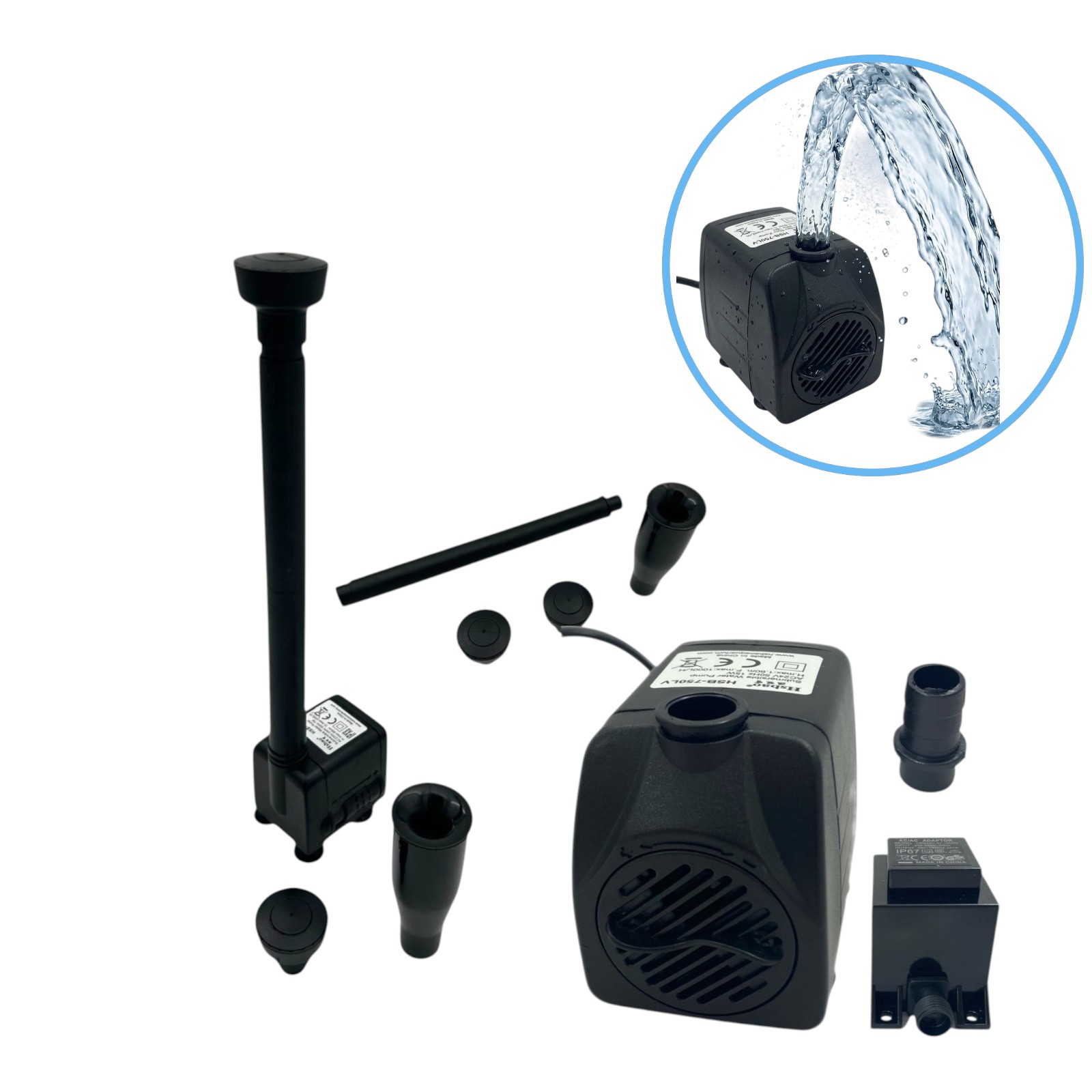 Pompa Do Fontanny Oczka HSB-750LV 24V 1000l/h + KOMPLET DYSZ FONTANNOWYCH