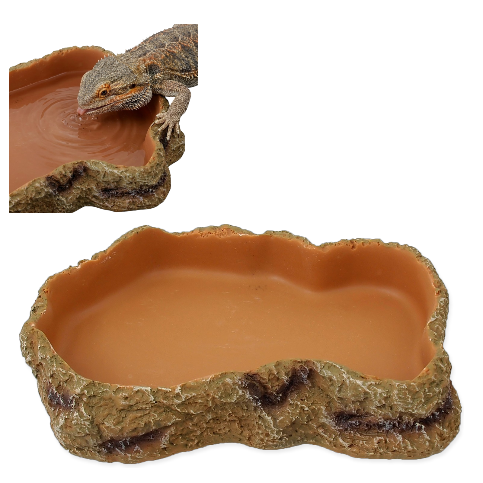 Naczynia do karmienia i pojenia Repti Planet mają wyjątkowo naturalne i realistycznie kamienne wykończenie z zewnątrz i gładką powierzchnię wewnątrz. Miseczki są powlekane, aby zapobiec rozwojowi szkodliwych bakterii oraz ułatwić czyszczenie. Neutralny, naturalny kolor pozwala na łatwe dopasowanie pojemników do wnętrza tropikalnego, pustynnego, czy jakiegokolwiek innego terrarium.