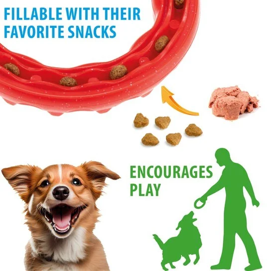 Otwór na smakołyki – możliwość wypełnienia pierścienia karmą, co zamienia zabawkę w interaktywny dozownik nagród.