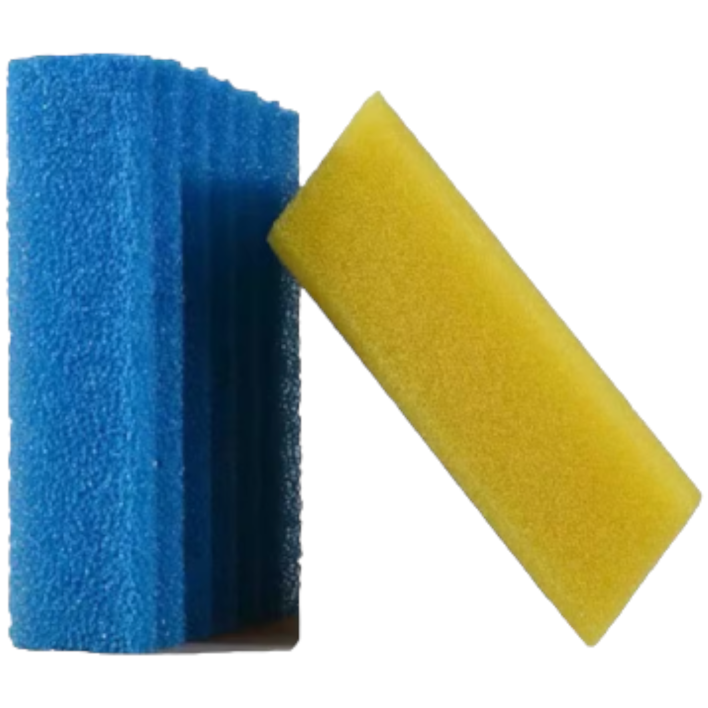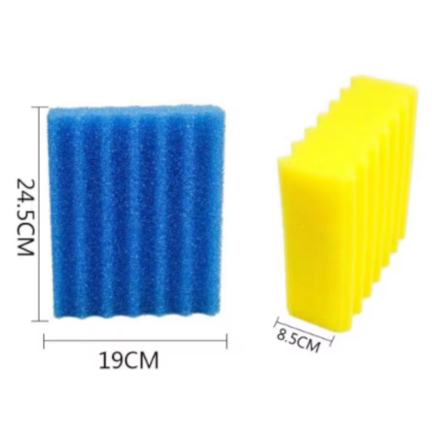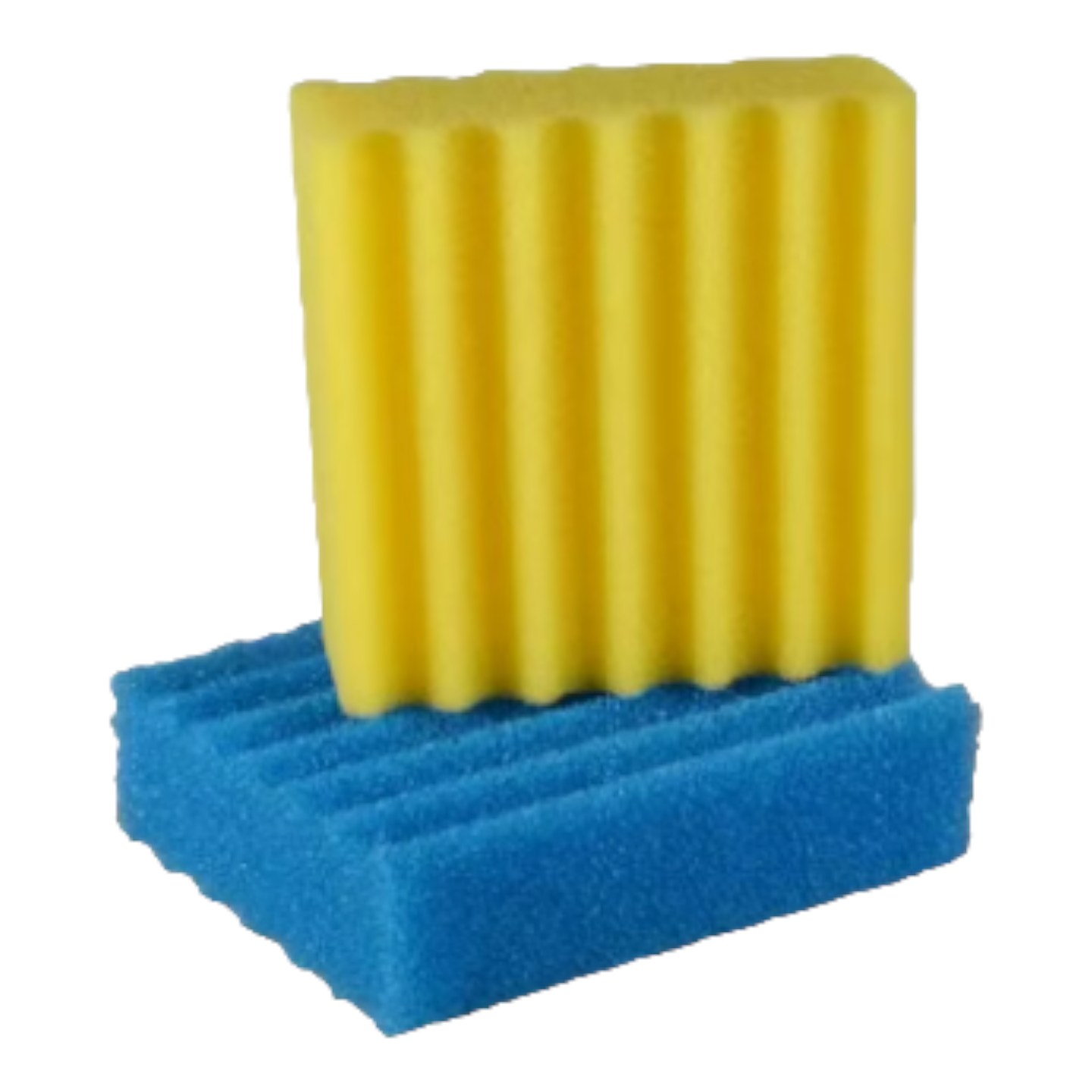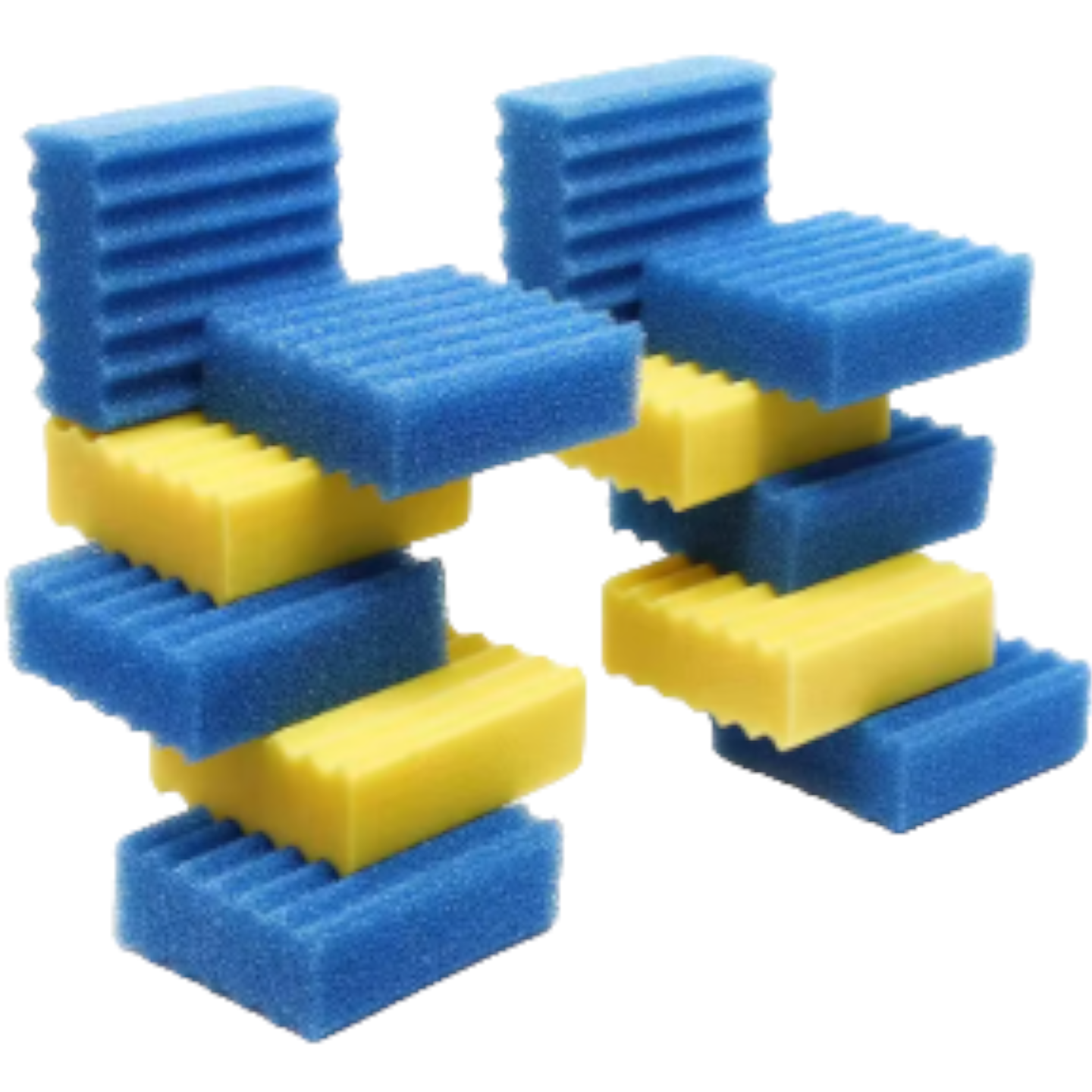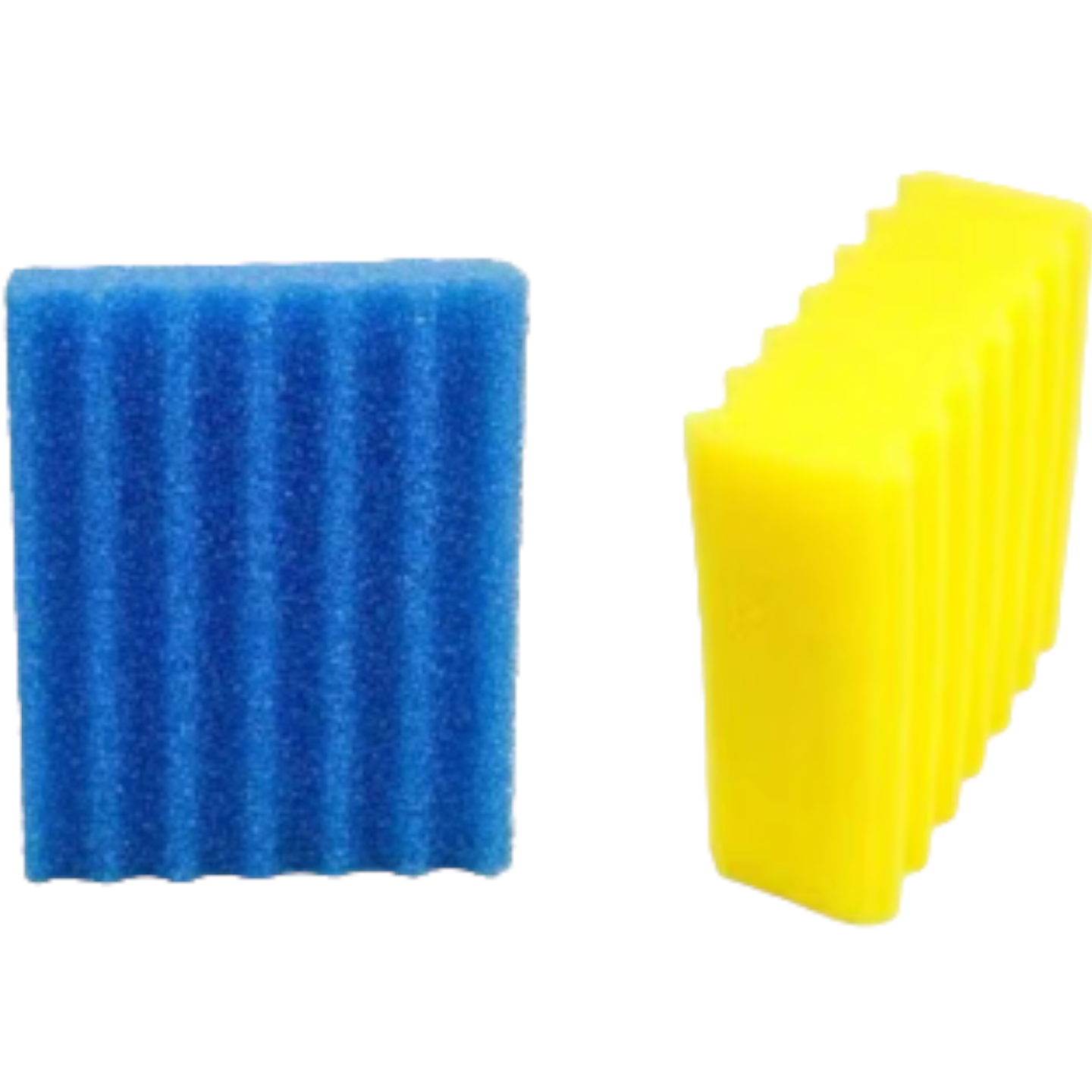 Wkład mechaniczny - bio-gąbka gruboziarnista (niebieska) x8 oraz bio-gąbka drobnoziarnista (żółta) x4, które zapewniają doskonałe oraz bardzo dokładne oczyszczenie wody z wszelkich zabrudzeń mechanicznych oraz stanowią siedlisko baterii nitryfikacyjnych, czyszczających wodę ze z toksycznych związków azotowych (przetwarzają toksyczny NH4 oraz NO3).