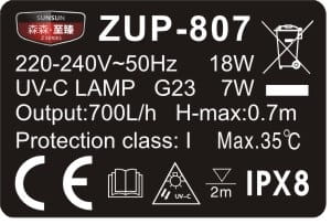 Wbudowana w modelu ZUP-807 lampa UV-C to najskuteczniejszy środek likwidujący glony, bakterie czy pasożyty w wodzie akwariowej.