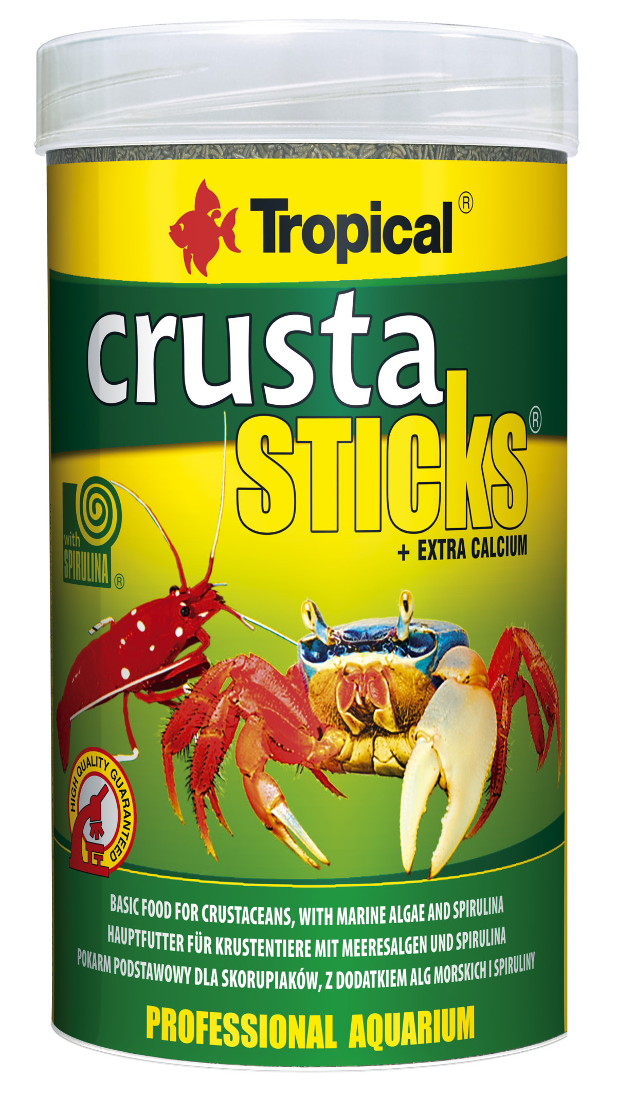 CRUSTA STICKS to pałeczki dla skorupiaków z algami morskimi i spiruliną. CRUSTA STICKS to pokarm w formie szybko tonących pałeczek, o wysokiej hydrostabilności, które zawierają dodatek alg morskich i spiruliny (6%). Pokarm CRUSTA STICKS przeznaczony jest do karmienia wszystkich rodzajów krewetek karłowatych (np. „amano”, „babaulti”, „red cherry”, „biene”, „tiger shrimp”, „blue shrimp”) i wieloramiennych (Macrobrachium sp.) oraz innych skorupiaków wodnych, w tym krewetek morskich o wysokich wymaganiach pokarmowych. Pałeczki zawierają podwyższoną zawartość wapnia, który jest niezbędny do budowy i rozwoju pancerzyków u skorupiaków.