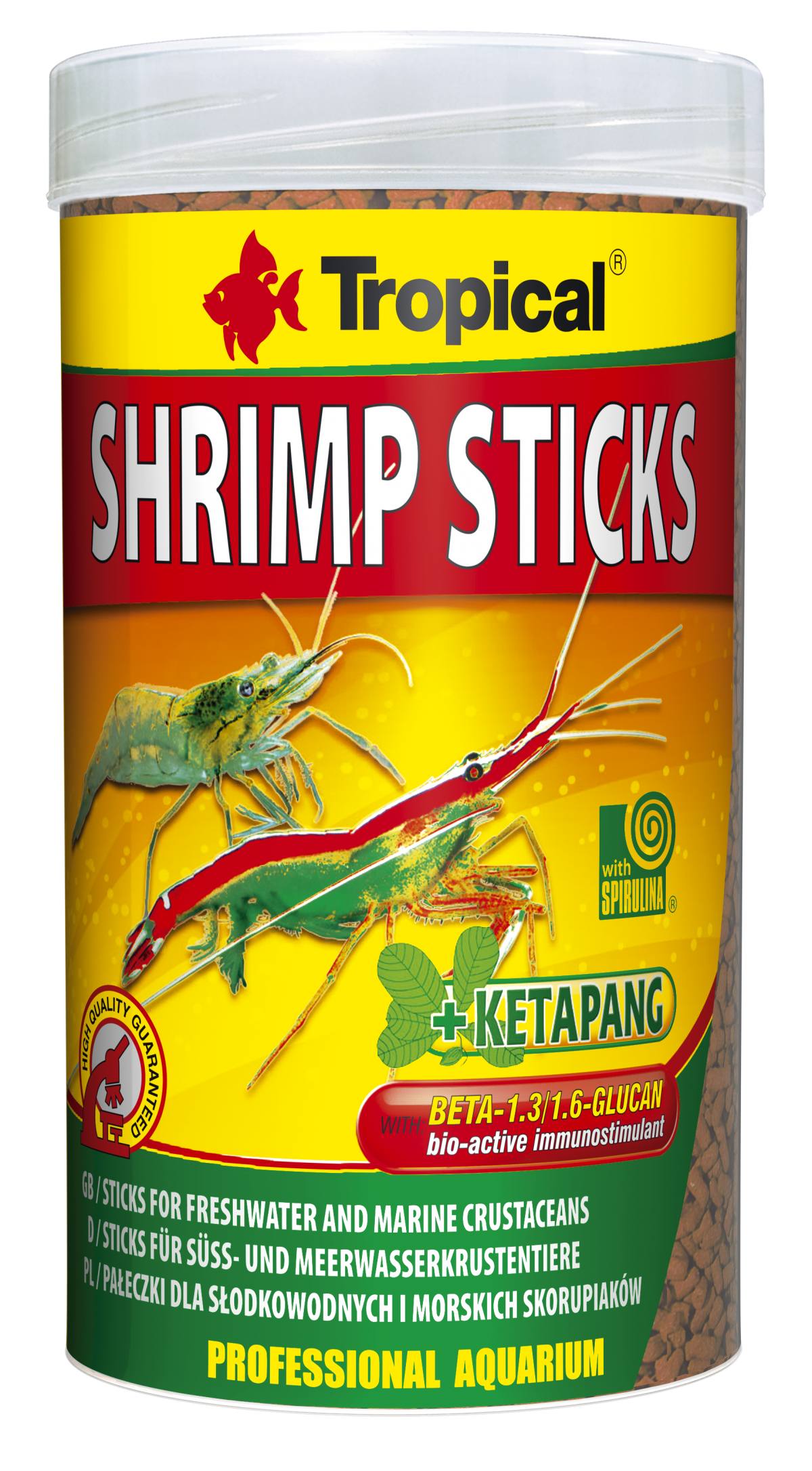 Wieloskładnikowy pokarm w formie tonących pałeczek, przeznaczony do codziennego karmienia skorupiaków słodkowodnych i morskich, w tym niezwykle popularnych słodkowodnych krewetek karłowatych. Obecna w pokarmie spirulina jest źródłem cennych witamin i substancji czynnych, które wraz z naturalnym immunostymulatorem – beta-glukanem aktywują układ odpornościowy skorupiaków, zwiększając ich odporność na choroby. Pokarm Shrimp Sticks został wzbogacony w naturalne barwniki z grupy karotenoidów, w tym astaksantynę. Ich obecność wpływa na utrzymanie skorupiaków w doskonałej kondycji, wzmocnienie ich wybarwienia oraz prawidłowy przebieg procesu linienia.