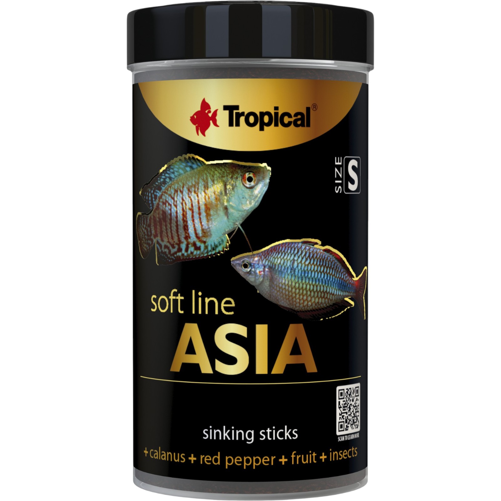 Soft Line Asia S to miękki, tonący pokarm dla wszystkożernych i mięsożernych ryb z Azji. W skład pałeczek wchodzą śledzie, których białko ma doskonały profil aminokwasowy, skorupiaki bogate w nienasycone kwasy tłuszczowe i chitynę, kilka gatunków alg oraz larwy owadów Hermetia illucens dostarczające dużej dawki energii. Ponadto miękkie granulaty Linii Soft zwiększają odporność ryb dzięki takim składnikom jak naturalny immunostymulator – beta-glukan, czosnek, prebiotyki z alg i witamina C. W skład pokarmów Linii Soft wchodzi również ciekawy skorupiak planktonowy kalanus (Calanus finmarchicus). Jest on źródłem astaksantyny, białka bogatego w aminokwasy egzogenne oraz nienasyconych kwasów tłuszczowych, w tym omega-3. Pokarmy Linii Soft dzięki miękkiej teksturze i bogactwu użytych składników pozwalają żywić ryby w sposób bliski naturalnemu, jednocześnie zapewniając akwaryście komfort karmienia. Miękki pokarm w formie tonących pałeczek dla wszystkożernych i mięsożernych ryb z Azji, w skład którego wchodzą śledzie i owady, będące źródłem wysokiej jakości białka oraz kwasów tłuszczowych omega-3, omega-6 i omega-9 intensyfikuje barwy ryb dzięki wysokiej zawartości karotenoidów ze skorupiaków (w tym kalanusa) i z czerwonej papryki oraz dodatkowi astaksantyny wysoka dawka beta-glukanu wzmacnia odporność ryb wyjątkowa smakowitość pokarmu zachęca ryby do żerowania.
