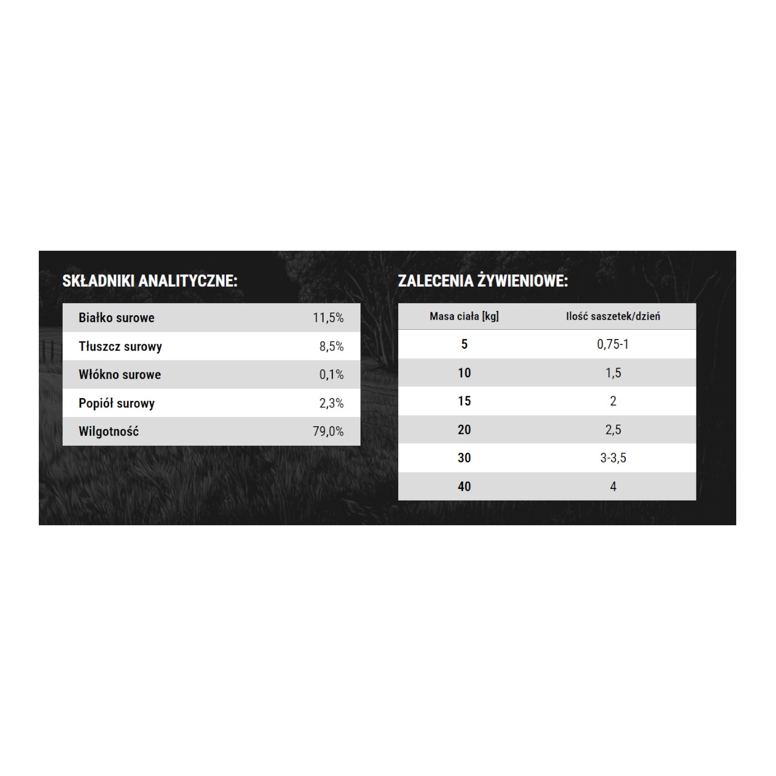 Zawartość mięsa: 90% mięsa i produktów pochodzenia zwierzęcego