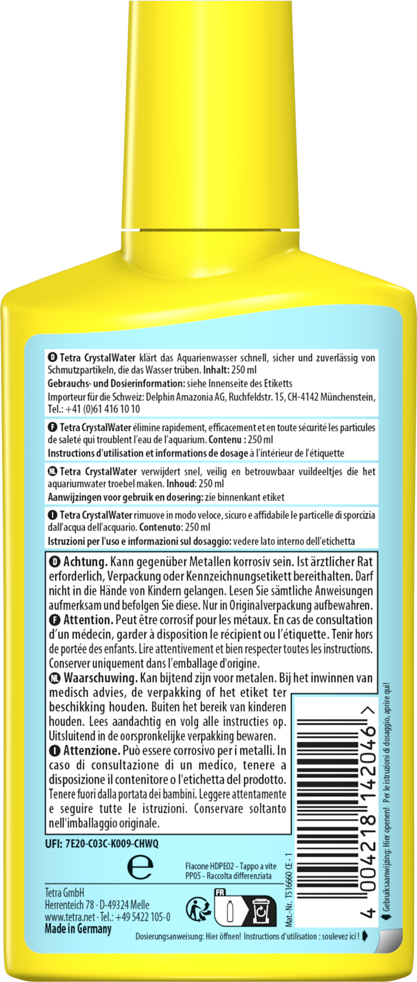 Preparat akwarytyczny, który szybko i bezpiecznie eliminuje zanieczyszczenia i zmętnienia wody, nadając jej krystaliczną czystość. Środek ten wiąże również unoszące się na powierzchni cząstki, które zanieczyszczają wodę i ułatwia ich usuwanie przez filtr, a rezultaty widoczne są już po 2-3 godzinach od zastosowania.