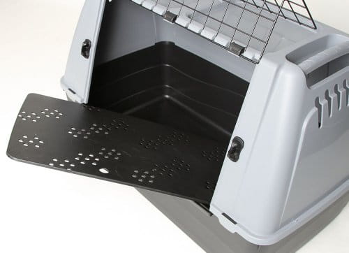 Dla lepszego komfortu transporter wyposażono w plastikową, perforowaną podłogę, która odprowadzi do dolnej komory wszystkie niepożądane ciecze.