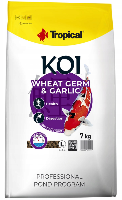 Tropical KOI WHEAT GERM&GARLIC PELLET SIZE L 7kg - pokarm podnoszący odporność karpi koi i innych ryb w oczkach wodnych