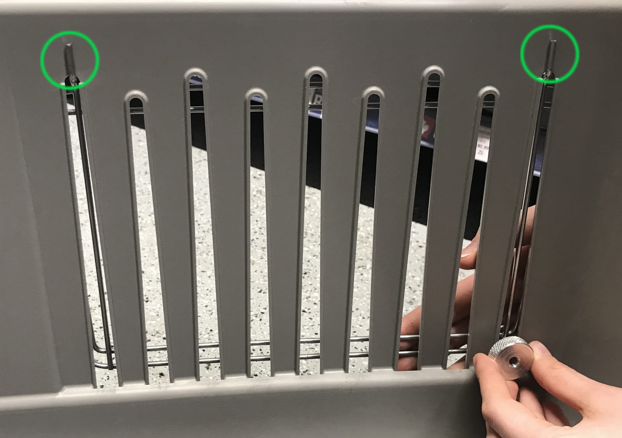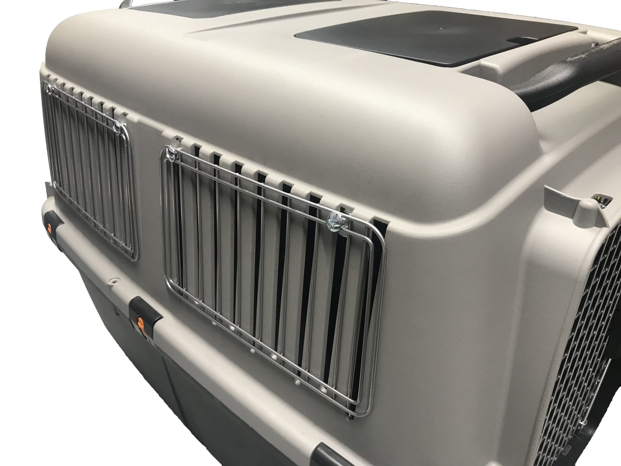Metalowe kratki do okien transportera lotniczego Bracco 4. Kratki można łatwo zainstalować w wersji z plastikowymi okienkami. Metalowe kratki stanowią dodatkowe zabezpieczenie na czas podróży, są również wymagane przez niektóre linie lotnicze.