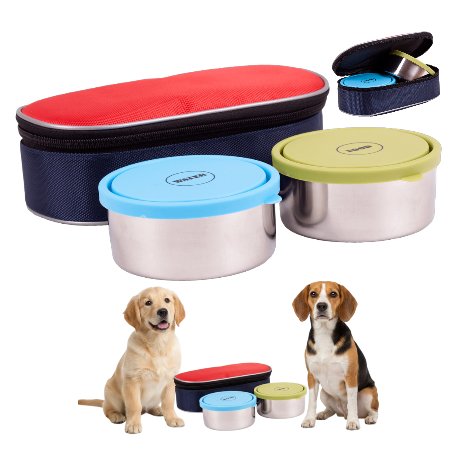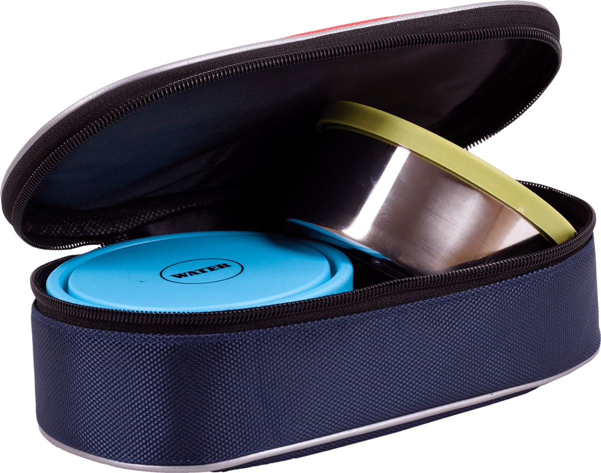 Praktyczny zestaw podróżny dla psa lub kota. Idealnie sprawdzi się podczas wyjazdu z pupilem. Składa się z dwóch solidnych miseczek wykonanych ze stali nierdzewnej, o pojemności 0,5l każda. Dodatkowo miski zostały wyposażone w plastikowe wieczka oznaczone opisem, która przeznaczona jest do wody, a która do pokarmu. Specjalna antypoślizgowa podstawa zapobiega ich przesuwaniu. Całość mieści się w zamykanym na zamek kompaktowym, lekkim etui pozwalającym na wygodne korzystanie podczas podróży.